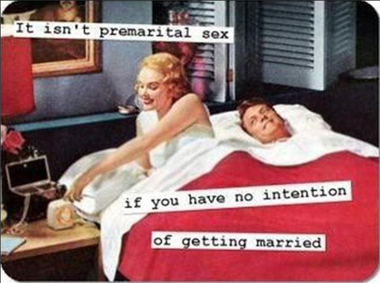 »Kvinnor bör inte ägna sig åt fysisk njutning före äktenskapet, vilket har blivit allt vanligare på sistone som ett sätt att prova ut vilken make som kan bli bra. Akta er så ni inte blir h*ror.«