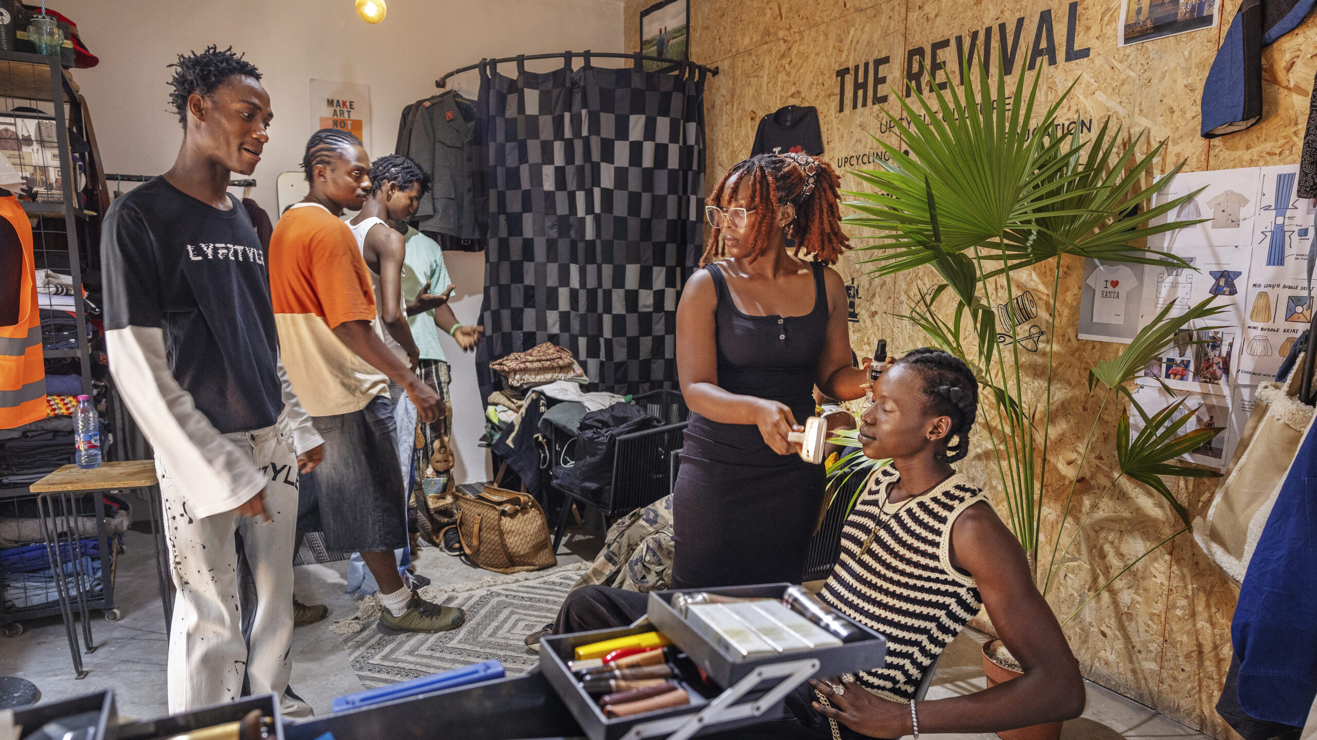 Kollektivet The revival. Unga kreatörer ger nytt liv åt kasserade plagg genom upcycling inne i studion.