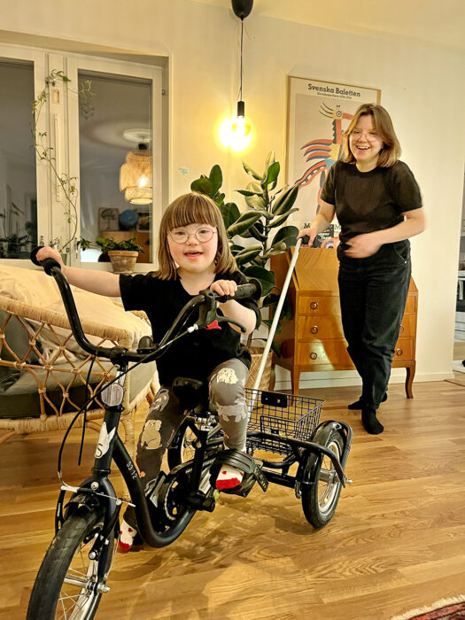 – Jag tror att det finns fördelar att få ett funkisbarn när du som förälder kommer från ett queer-community. Man förhåller sig redan till normen och det finns kanske inte samma föreställning om vad en familj ska vara. Det är väldigt sällan som jag får höra konstiga kommentarer, säger Hanna.