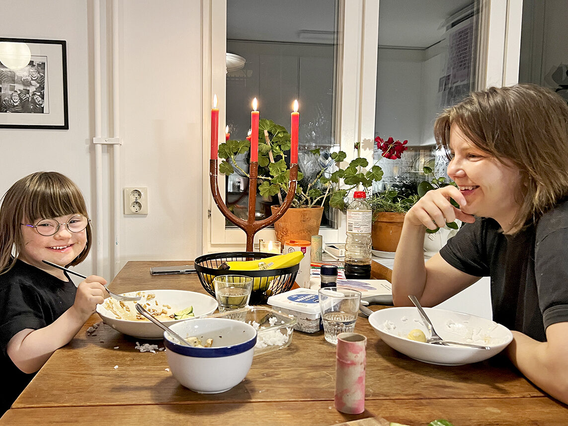 »Mer ris! Mer soja!« Stearinljusen är tända på köksbordet hemma hos Hanna Widgren och Lou. Utanför har mörkret fallit över Skarpnäck i södra Stockholm. Lou, 5 år, häller glatt soja över en hög med ris, tofu, ägg och gurka.